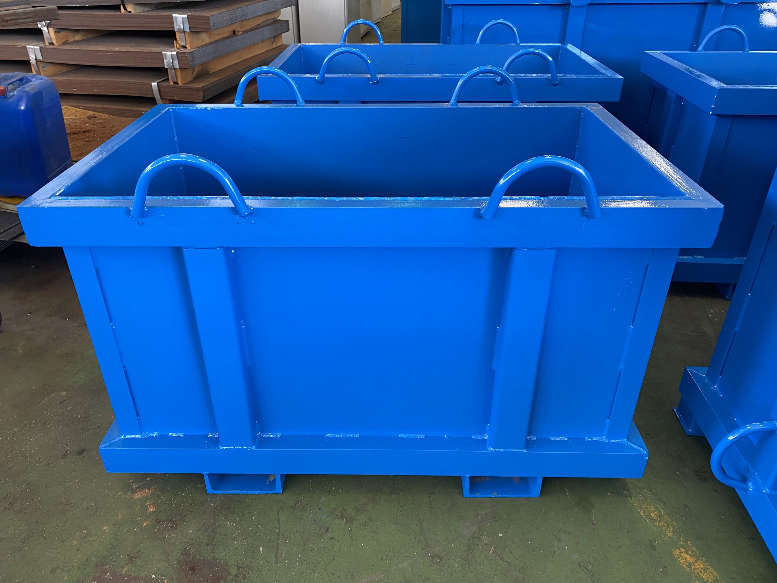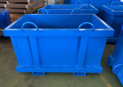 Fabricación de contenedores a medida y según las necesidades de cada cliente en acero de calidades desde ST-275, ST-355, etc. a acero anti-desgaste hasta 450 Brinell. Además de esto, todos nuestros componentes son de fabricación propia lo que permite un control en cada fase del proceso y calidad constante.